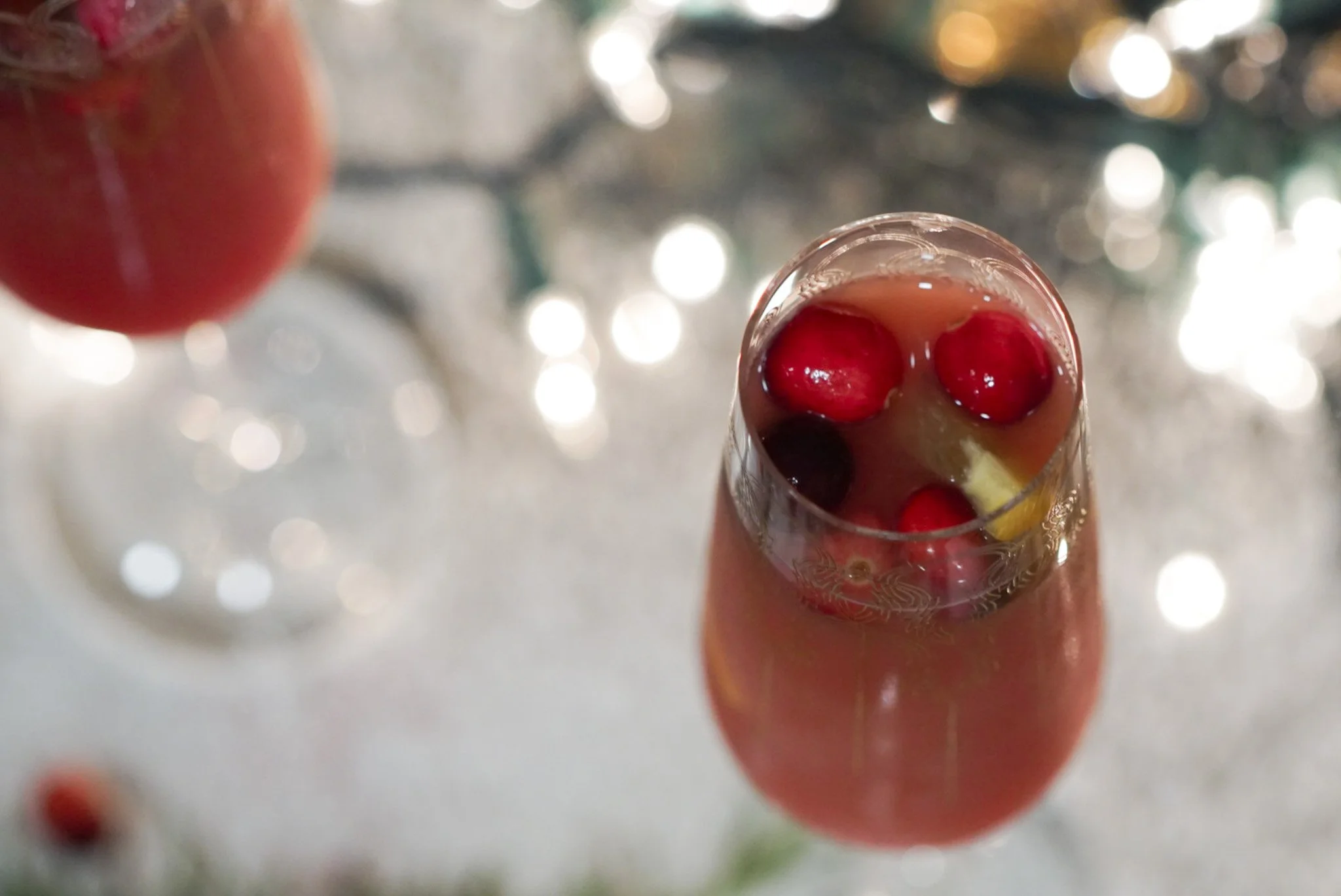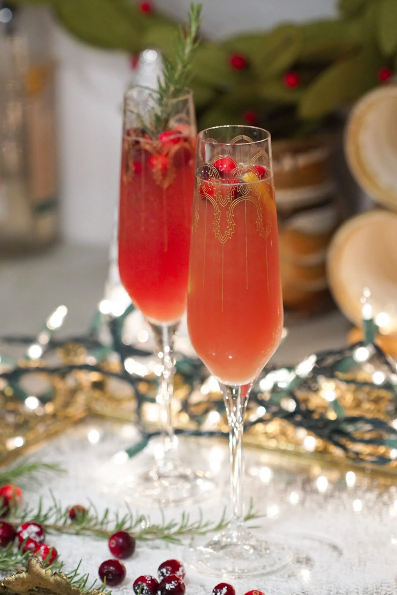 Fill drink shaker with ice, 1/4 cup orange juice, 3/4 cup cranberry juice (or to taste), splash of club soda (optional), shake and pour. To your glass pour the mixture, add a few cranberries (for decoration) and a sprig of rosemary.