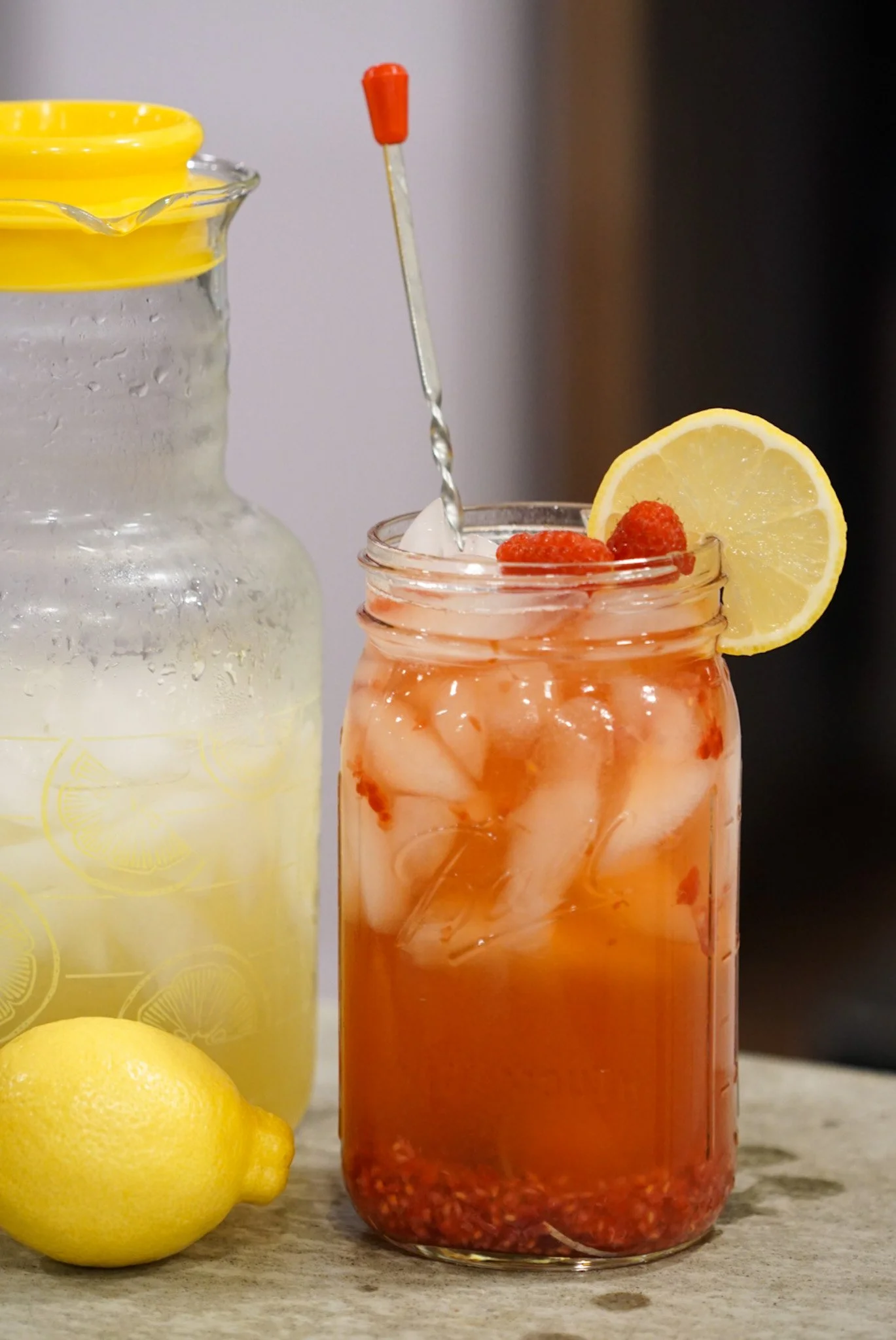 I really like red raspberry leaf tea as well, which if you haven’t heard, is amazing in assisting your uterus through labor. I wanted to tone down the acidity of the aid so I added some freshly muddled raspberries and the red raspberry leaf tea for an Arnold Palmer style labor-aid. It is so tasty and refreshing.